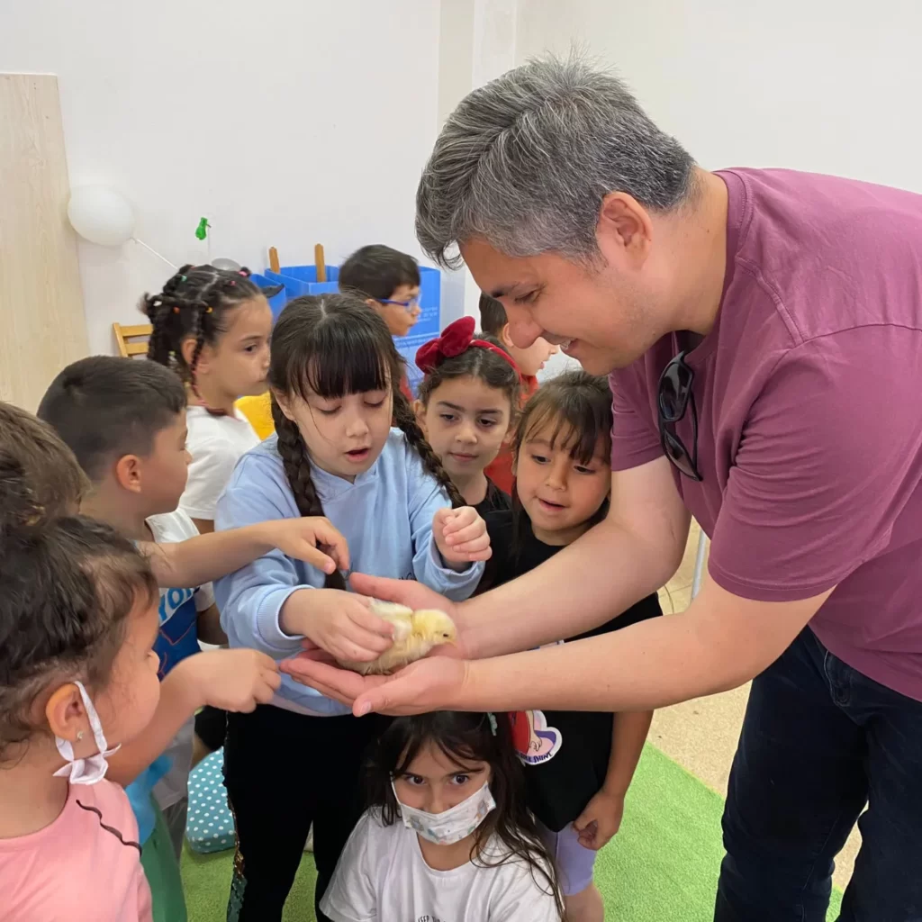 Proje kapsamında okul anasınıflarına kuluçka makinesi kurularak, minik öğrencilere yumurtadan civcive yaşam döngüsünü anlatan açıklayıcı bir sunum yapılarak, her öğrencinin yumurtaya temas etmesi sağlanarak öğrencilerle birlikte kuluçkalık nitelikte yumurtalar makineye dizildi. 21 günlük kuluçka süresi öğrencilerce gün gün gözlemlenerek çıkım gününün gelmesi büyük bir heyecanla beklendi. Çıkım günü geldiğinde civcivlerin yumurtadan çıkmalarıyla öğrencilerin mutluluk ve heyecanları görülmeye değerdi. Yumurtadan çıkan civcivler civciv büyütme yuvalığında öğrencilerce beslenerek öğrencilere hayvan sevgisi ve sorumluluk duygusu kazandırılması amaçlandı. Okul idaresince okul bahçesinde inşa edilen dekoratif hobi kümesinde öğrenciler yıl boyunca süs tavuklarını görebilme ve besleme imkanına sahip olacaklar.