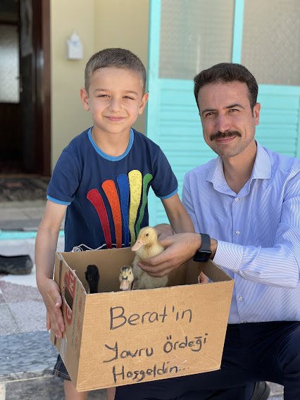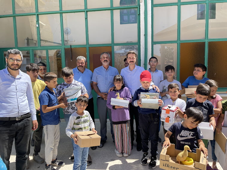 39 kursun tamamını her hafta ziyaret ettiğini ifade eden Kaymakam Açıkgöz; “Yaz Kur’an Kursları milli ve manevi değerlerle donanmış inanan bir neslin yetişmesi için çok önemli. Günümüzde insanların önemli bir kısmı temel dini bilgileri ve namaz surelerini çocukluklarında gittikleri Yaz Kur’an Kurslarında öğrenmişlerdir. Eğer bu dönemde çocuklarımızın camiler ile olan irtibatlarını teşvik edici çalışmalarla sağlayabilirsek ömür boyu kullanacakları birçok dini bilginin temelini de sağlam şekilde atmış oluruz. Çocuklarımızı Yaz Kur’an Kurslarına teşvik edebilmek için haftalık ziyaretlerimizde dondurma ikramı çalışması başlatmıştık. Bu ziyaretlerimizin birisinde bir çocuk ördek civcivi isteğinde bulundu. Diğer çocuklarımızın ne düşündüğünü sorduk, her birinin çok istekli olduğunu görünce çocuklarımızın tamamına ördek civcivi hediye etmeye karar verdik. Bu projeyle duyuşsal kazanım olarak hayvan sevgisinin yanında sorumluluk duygusu da kazandırmayı amaçlamaktayız. Çocuklar kendisine ait bir canlıyla ilgilenecek ve büyümesi için çaba harcayarak bir sorumluluk üstlenecek. Kaymakamlık olarak zaten Yaz Kur’an Kurslarına katılım gösterip devam eden çocuklarımızı ödüllendirmek istiyorduk. Çünkü 4 haftadır yaz Kur’an Kurslarımıza neredeyse hiç devamsızlık yapmadan katılım sağladılar. Sadece bunun için bile yavrularımız her şeyin en iyisini hak ediyorlar. Proje kapsamında kurslara katılan her öğrenciye toplamda 1200 adet Pekin Ördeği civcivi hediye etmiş olduk. Bu proje kapsamında ilçemizdeki ördek popülasyonu da ciddi oranda artış göstermiş olacak. 1200 adet Pekin Ördeği ilçemizdeki kanatlı varlığına katılmış olacak. Pekin Ördekleri yılda 200-250 adet yumurta verimi olan bir ırk. Eğer ailelerimiz çocuklarımıza destek olurlarsa kısa sürede ilçemizdeki ördek sayısı çok ciddi rakamlara ulaşabilir. Projemizin hayırlara vesile olmasını temenni ediyorum” dedi.